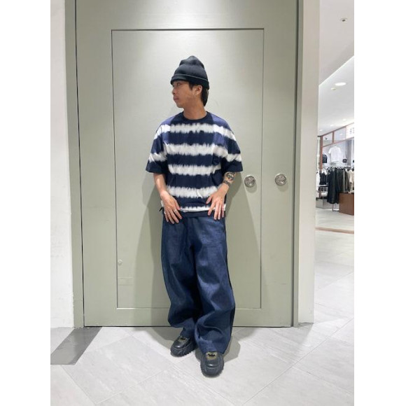 很難在其他牛仔褲中出現的針腳特有的輪廓褶皺。為了整體穩重的輪廓,上衣是“B'omnivore”的泰國Tee。色調也試著用一色調整理成的造型◎