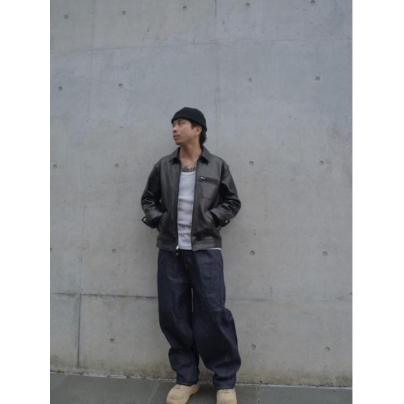 因為使用的是厚重的皮革,雖然有重量,但也有分層的輪廓,是萬能的夾克。